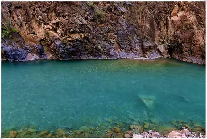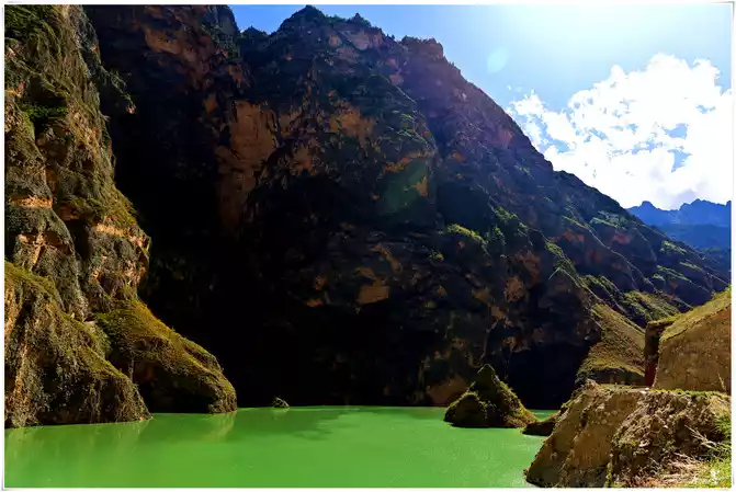 The water of the Dongwang River is emerald green, and it is quiet like an emerald embedded in the valley floor under the sun.