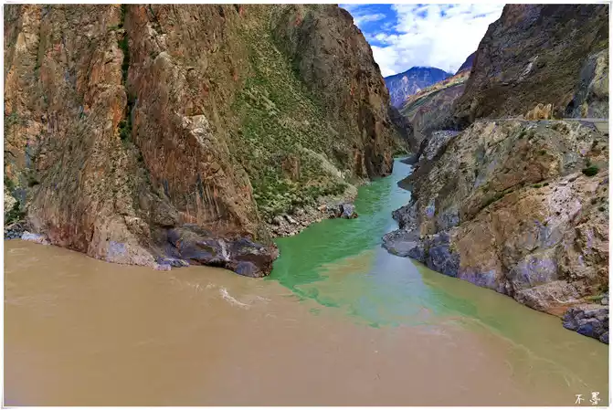 Subsequently, the green Dingqu water merged into the yellow Jinsha River and rushed south.