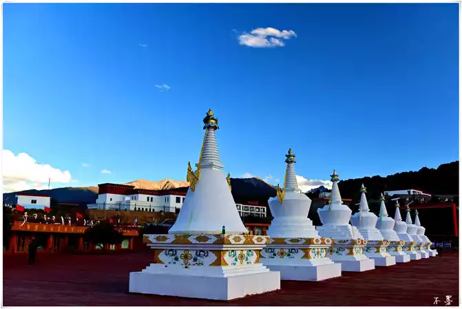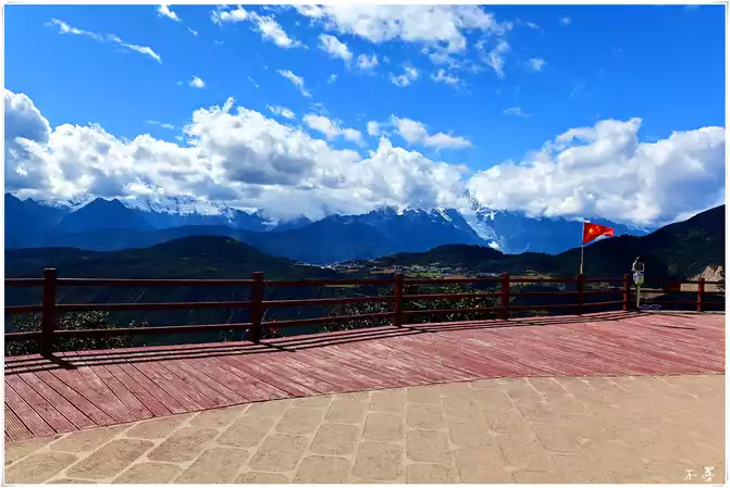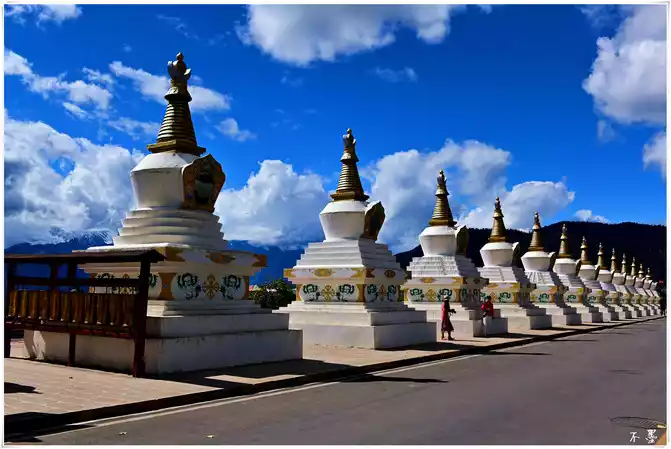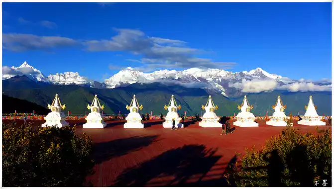 The Wunongding Observation Deck is an excellent location to see the panoramic view of the Meili Snow Mountain, the sky is blank and the clouds are rolling, the snow-capped peaks are beautiful, and the fields and villages are hidden in the mountains like a secret place. Unfortunately, the clouds were a little thick at that time, and the snow-capped mountains were hidden in the clouds, and it was not very clear. The observation deck has thirteen white pagodas, so it is also called the thirteen white pagodas welcome platform, which corresponds to the thirteen snow peaks of Meili Snow Mountain.