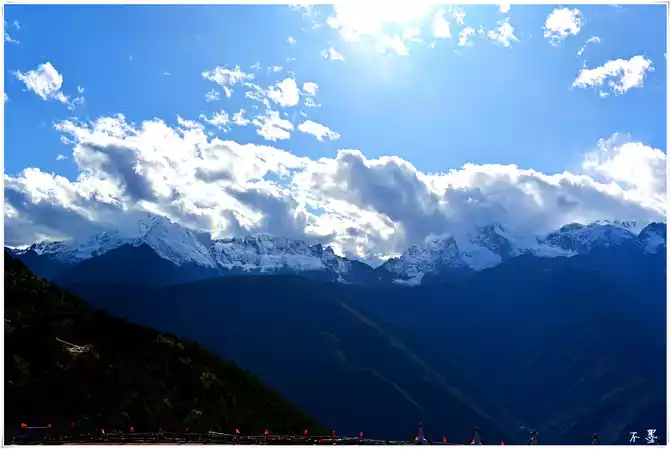 The room looks at Meili Snow Mountain, the position is higher than the observation deck of Feilai Temple, the view is wider, although the clouds are a little heavy, and a little backlit, the thirteen peaks of the prince are still unobstructed.