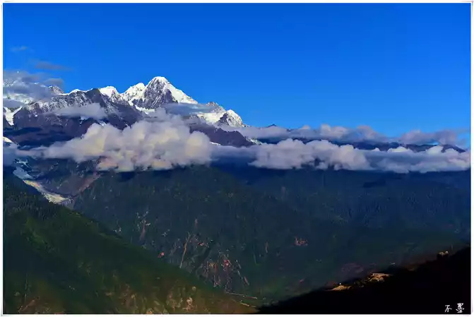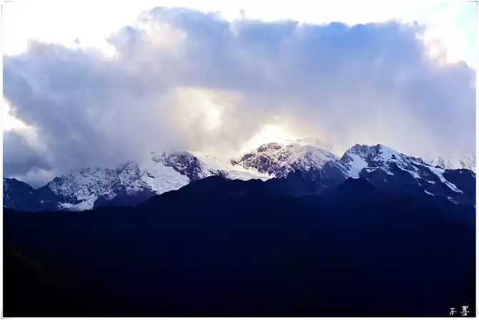 The clouds and mist rolled, the snow-capped peaks were faint, the mountains were as wild as daisies, and the snow was as silver. With the smoke of the simmering mulberry terrace, the snow-capped mountains become more and more mysterious, and I hope that tomorrow the clouds will disperse, and I will see the beauty of Kawagbo and see the wonders of Rizhao Jinshan.