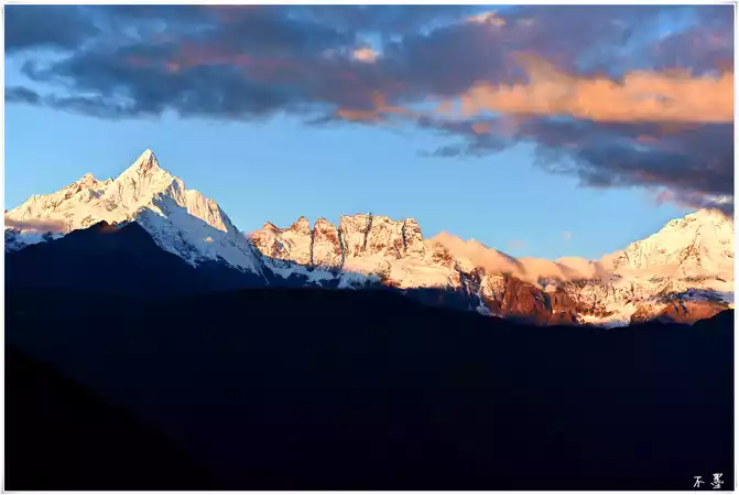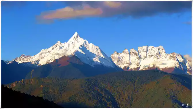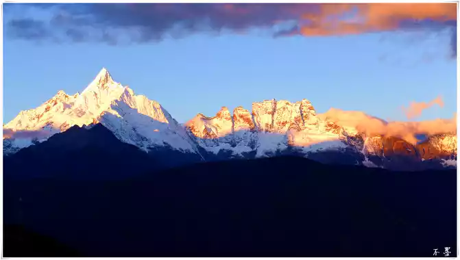 Meili Snow Mountain has thirteen peaks, known as the Thirteen Peaks of Prince Taipei, and the highest peak, Kawagbo, is 6,740 meters above sea level. In Tibetan-speaking regions, Kawagbo has been worshiped by Tibetans since ancient times. In the hearts of Tibetans, Kawagbo Peak is the dwelling place of their protector god. Therefore, Tibetan compatriots believe that Meili Snow Mountain cannot be climbed, and once humans reach the peak, the gods will leave them, and disaster will come.
