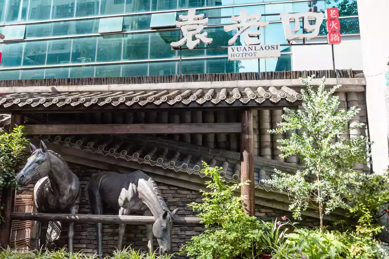 After watching the handsome guys and beautiful women in Taikoo Li, you can go to Yuan Laosi to make a hot pot 77. A hot pot restaurant in a garden with a beautiful and antique environment.