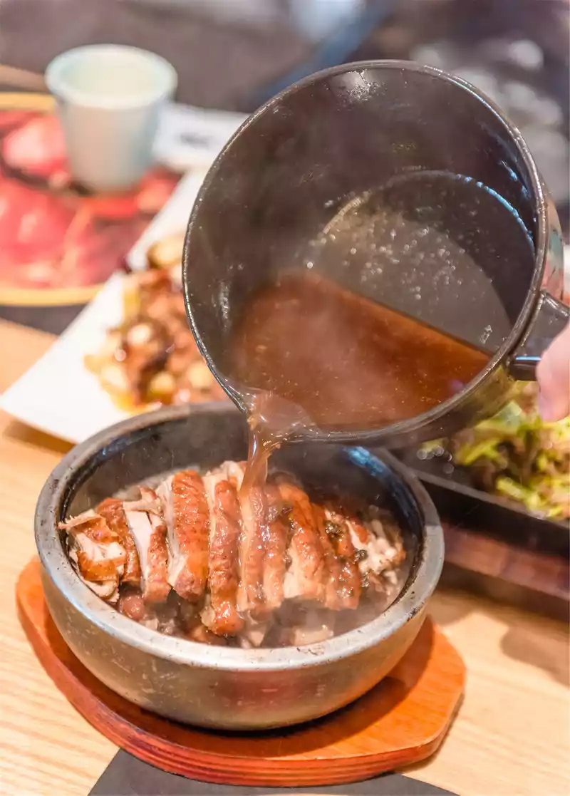 When served, the butter topping will drizzle right under your nose on the roast duck, sizzling as if a flock of ducks are dancing. The topping is amazing, who sees the food dancing, can it not induce the taste buds. Roast duck is grilled more charred, and I personally think it's just right to grill it to this extent. Overall, it is a little more spicy and less greasy than the traditional roast duck.
