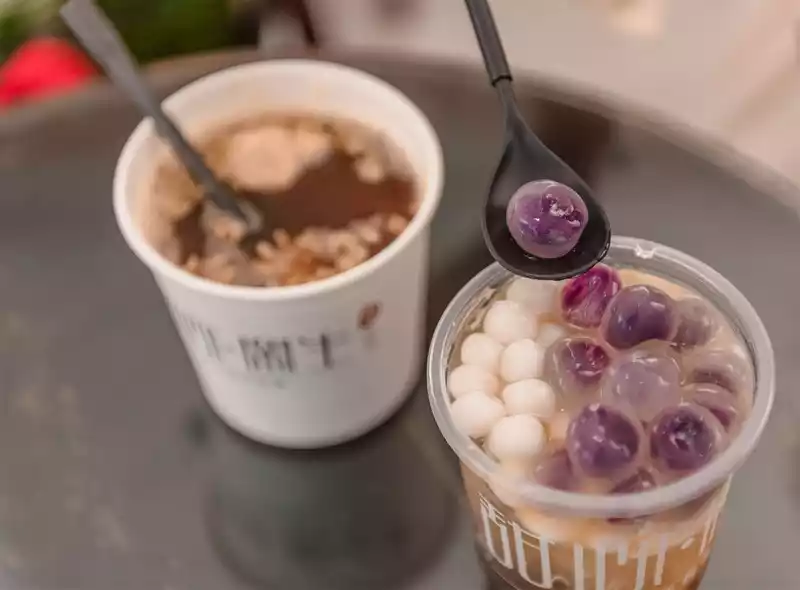 Three fresh ice powder, ingredients include brown sugar, mash, small glutinous rice balls, and purple sweet potato ice glutinous rice balls, which are super generous. Purple sweet potato glutinous rice balls are chewy and non-sticky, cute and lovely. I like to eat iced glutinous rice balls so much, maybe in summer, as long as it is added to the name, it is very attractive.