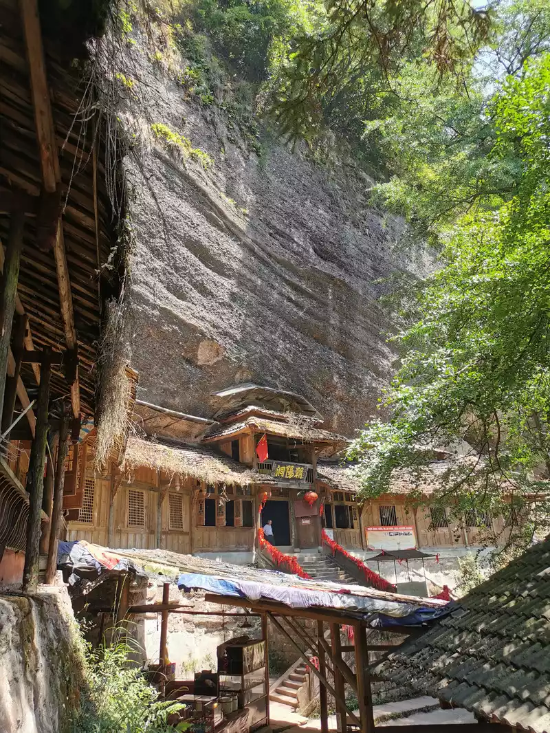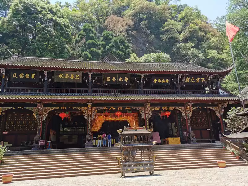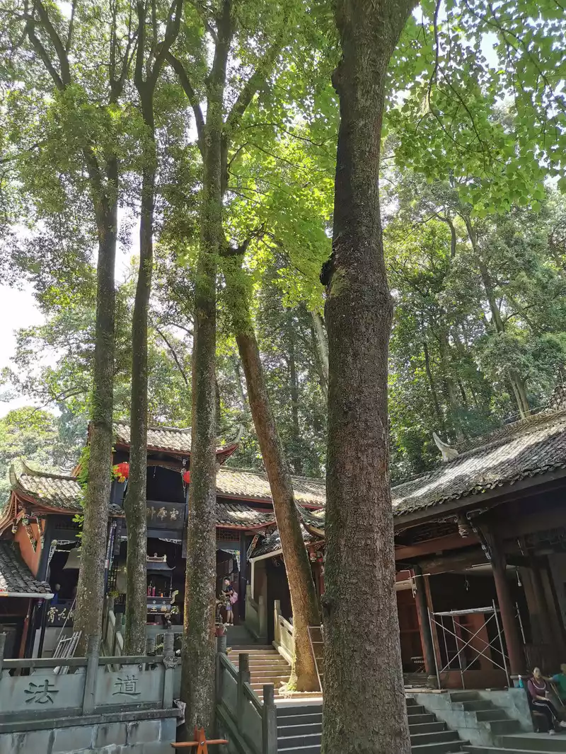 The famous Tianshi Cave has arrived. Tianshi Cave is the core of the Qingcheng Mountain Taoist temple, which was built during the Sui Dynasty, surrounded by mountains on three sides, facing caves on one side, and ancient trees towering into the sky, very quiet. There are statues of the "Heavenly Master" Zhang Daoling and his thirty-generation grandson "Xujing Heavenly Master" in the cave. According to legend, at the end of the Eastern Han Dynasty, Zhang Daoling preached here. The main hall is the "Sanqing Hall", and behind the hall are monuments such as the Yellow Emperor Temple and the Tianshi Cave. There is an ancient ginkgo tree in front of the cave entrance, which is said to have been planted by Zhang Tianshi himself, and is more than 2,000 years old.