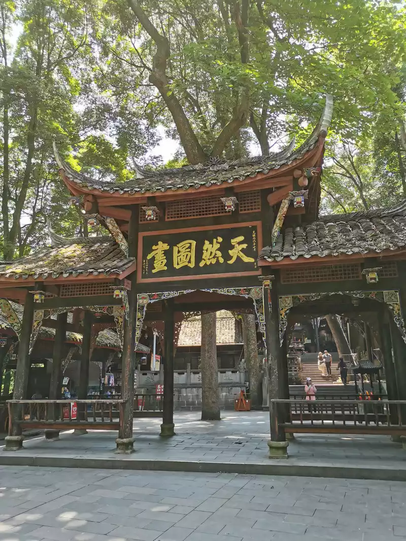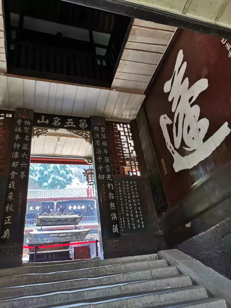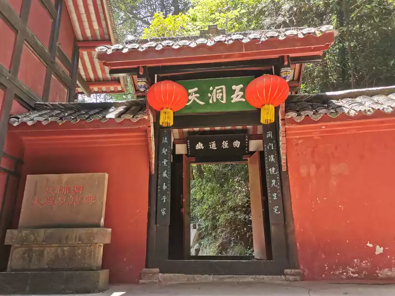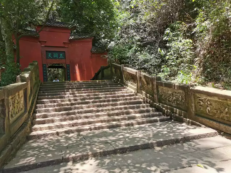 Enter and exit the "Five Cave Heavens" archway in the Tianshi Cave. The cave heaven is a famous mountain scenic spot where immortals live, and Taoism has a total of ten cave heavens, and Qingcheng Mountain is known as the "fifth cave heaven".