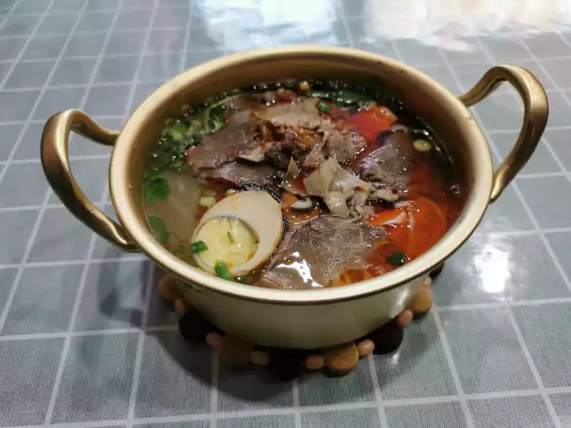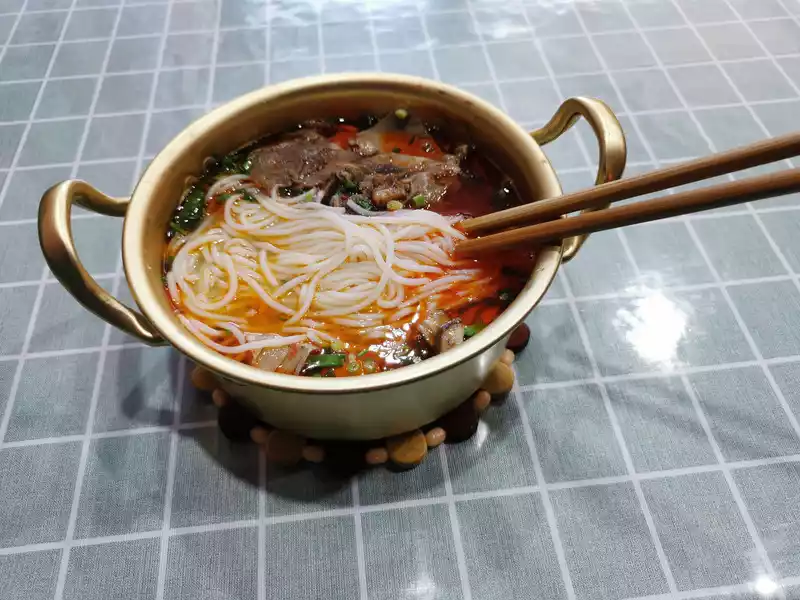 Return to Chengdu in 3 hours. Dinner is a bowl of beef rice noodles, 13 yuan.