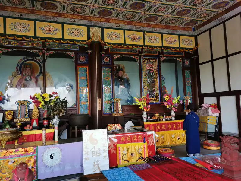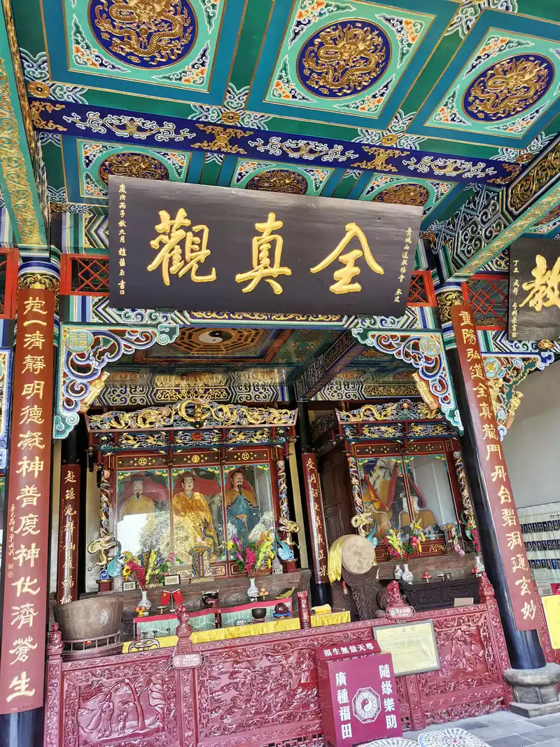 hall contains statues of immortals such as Patriarch Zhenwu, Lü Dongbin, and Tie Gui Li, as well as murals of the Eight Immortals, poetry and inscriptions, etc. The Taoist priest inside is very responsible and does not allow tourists to take pictures.