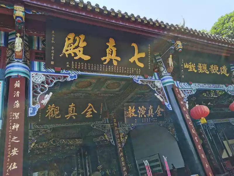 The Quanzhen Temple was restored and rebuilt in 1996, including the Cihang Hall, the Seven Truths Hall and the Five Ancestors Building. The front hall is dedicated to the Taoist Cihang Zhenren (Buddhist Guanyin). The apse is dedicated to the seven disciples of Wang Chongyang, the founder of Quanzhen Dao. Above the Seven Truths Hall is the Five Ancestors Building, which enshrines Wang Xuanfu, Wang Chongyang, Liu Haichan, Lü Chunyang, Zhong Liquan and other "Five Ancestors".