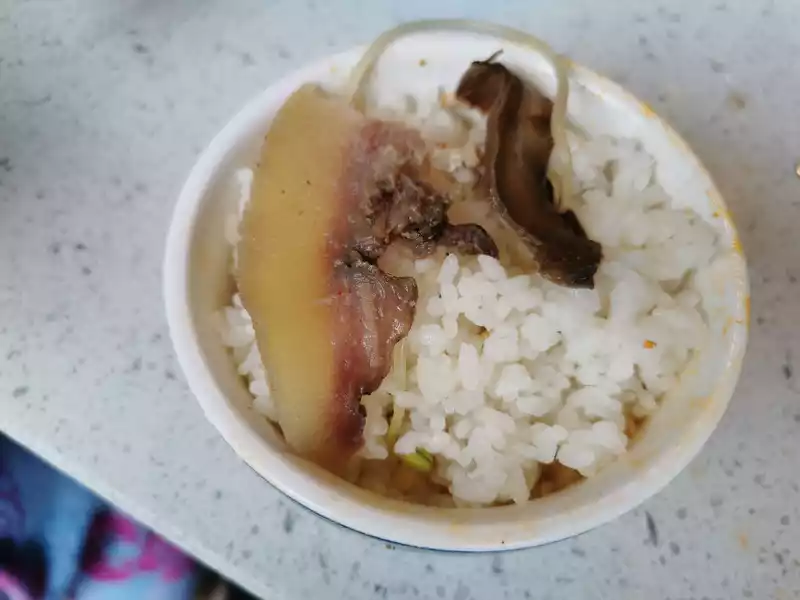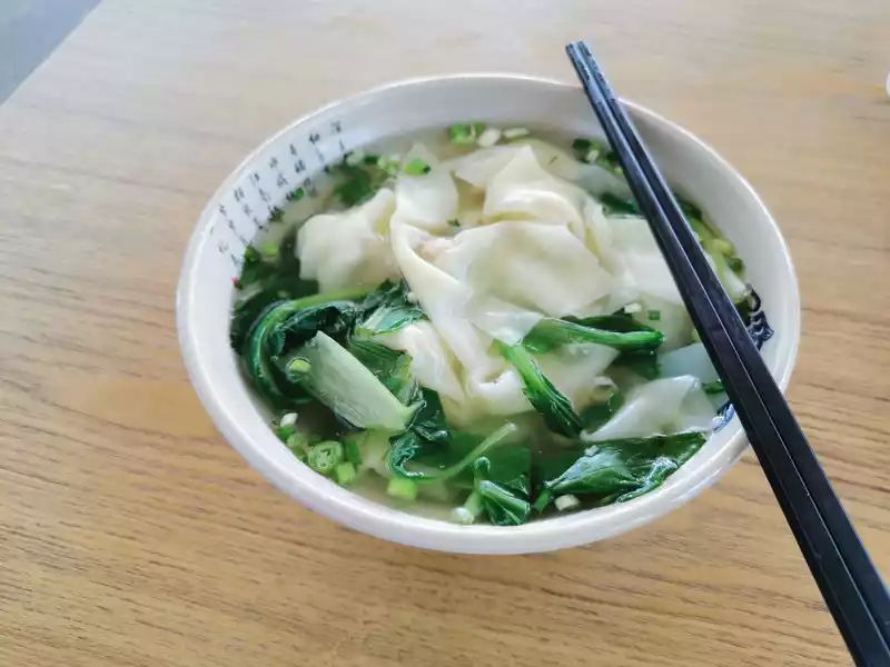 After spending most of the day in the mountains, my stomach is now growling. There happened to be a fast food restaurant next to Qingchengshan Station, and I ate a bowl of dumplings for 16 yuan.