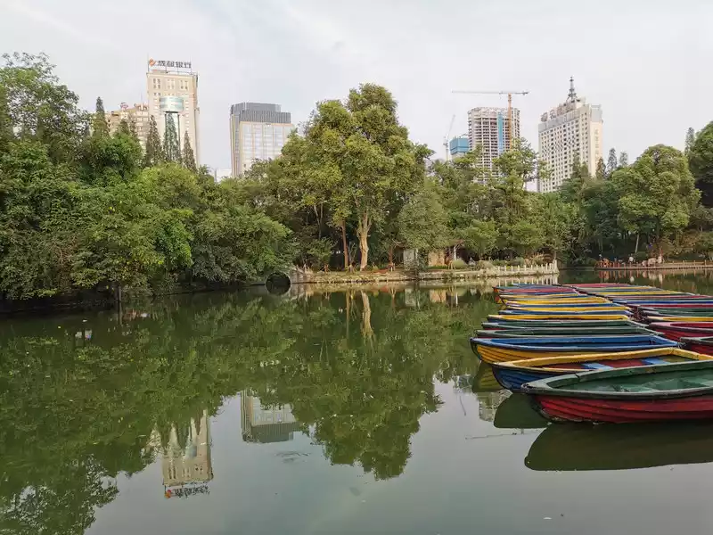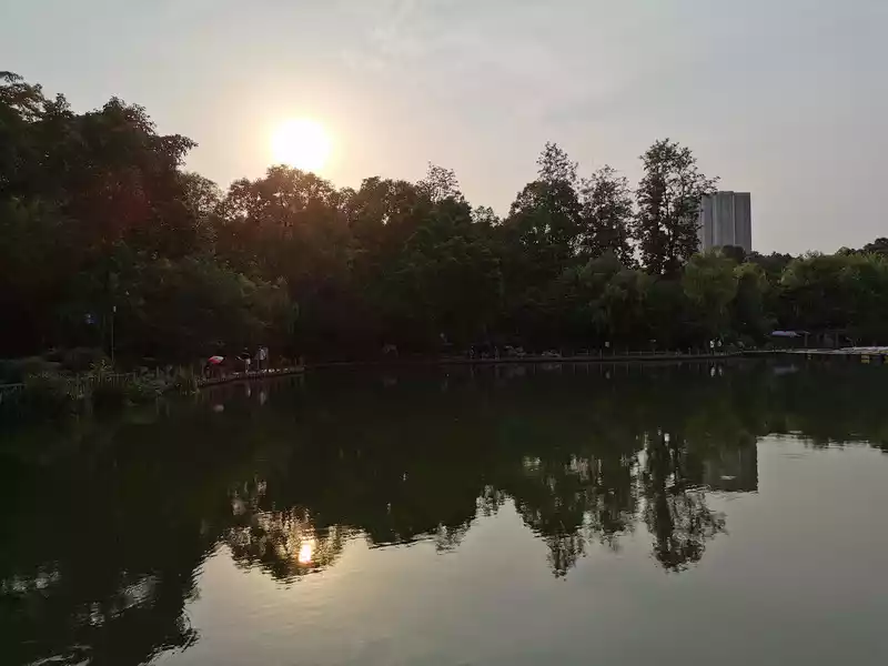 From Qingcheng Mountain back to Chengdu City, it was already 6 o'clock in the evening to People's Park. When I looked up, the sun was still high in the sky, and the sunset time in the western region was an hour later than in the east.