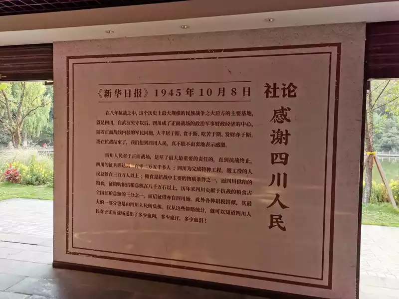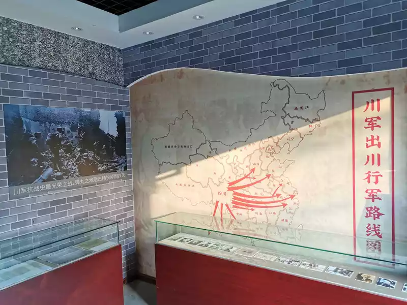 Sichuan Military and Civilian War of Resistance Documentary Exhibition Room. During the Anti-Japanese War, Sichuan was one of the regions with the largest number of participants and the most tragic sacrifices. In the national anti-Japanese war team, there is one Sichuan for every five soldiers. 3.4 million Sichuan troops participated in the war, with more than 640,000 casualties.