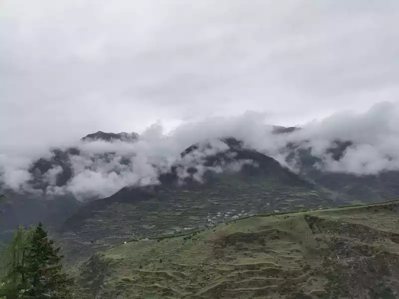 After more than four hours, we arrived at Maobiliang near Siguniang Mountain Town, which is the best place to enjoy the four peaks of Siguniang Mountain, provided that the weather is good and the visibility is good. We didn't get to appreciate the majestic snow-capped mountains this time, but we harvested the boundless sea of clouds and wonderland.