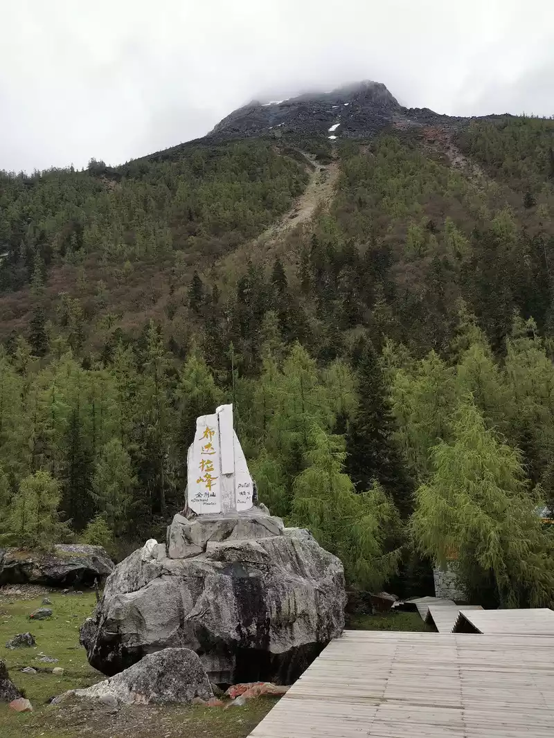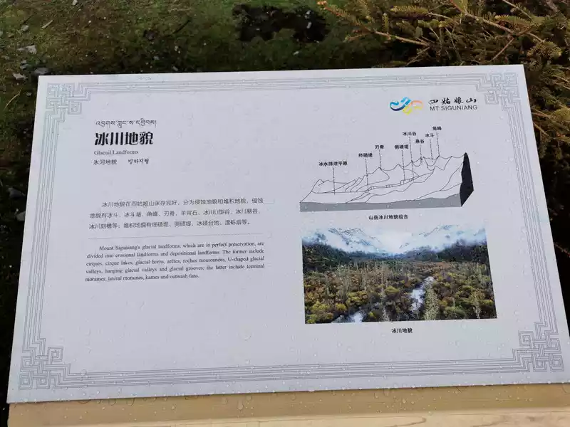 text on the wall of the tourist service center states: Mao Zedong's "Seven Laws: Long March" "I like the snow of Minshan for thousands of miles, and the three armies are happy after the pass" refers to "Siguniang Mountain" ("China National Geographic" 2003.9)。