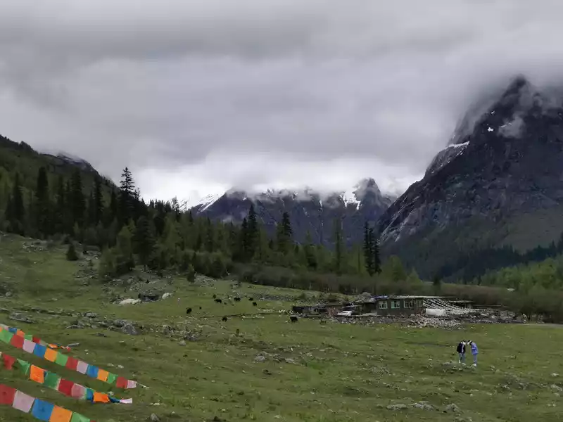 I feel that this place is a bit like the Luorong cattle farm in Daocheng Aden, with grasslands, cattle and sheep, glaciers, and snow-capped mountains.