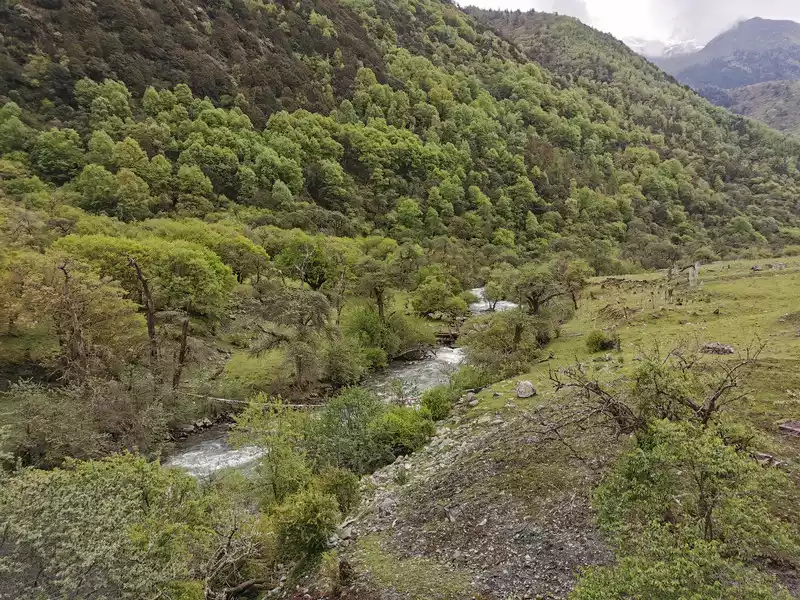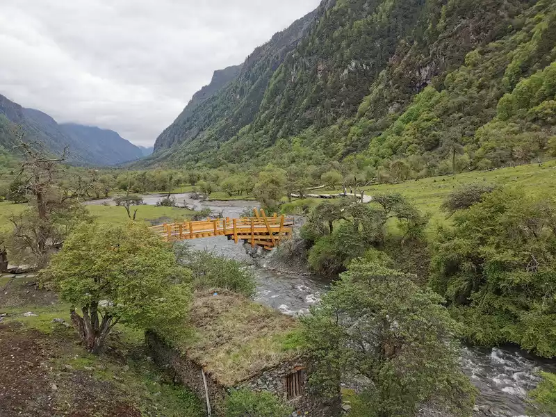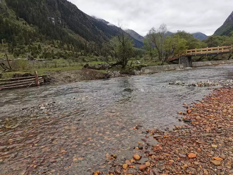 Seeing this, you may be curious, where are the two bridges, Shuangqiaogou, Shuangqiaogou? I also asked many people to find out that there are two wooden bridges across the Zanla River, one is a willow bridge made of willow wood, and the other is a side bridge made of sequoia wood, the picture is as follows.