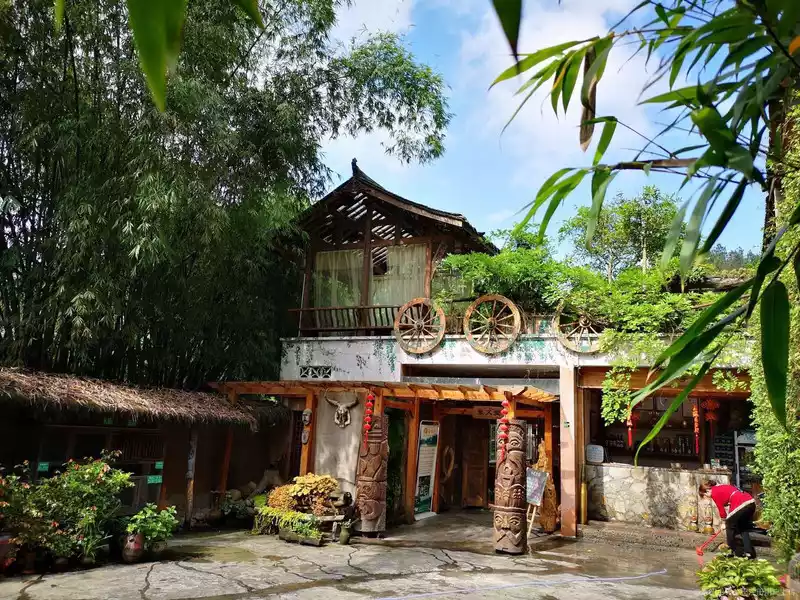 Among the Orion Forest tribes, the most distinctive is the Hongya tribe, which is an ancient house courtyard, which was split from the local old house in Hongya and put together here. At the gate of the Hongya tribe, there is a wooden tag with the words "Surprise inside and outside", and the surprise lies in the land under your feet: on the plain of the plain and green fields, the farmhouses are surrounded by bamboo forests and trees, forming rural settlement units like green islands in the fields .