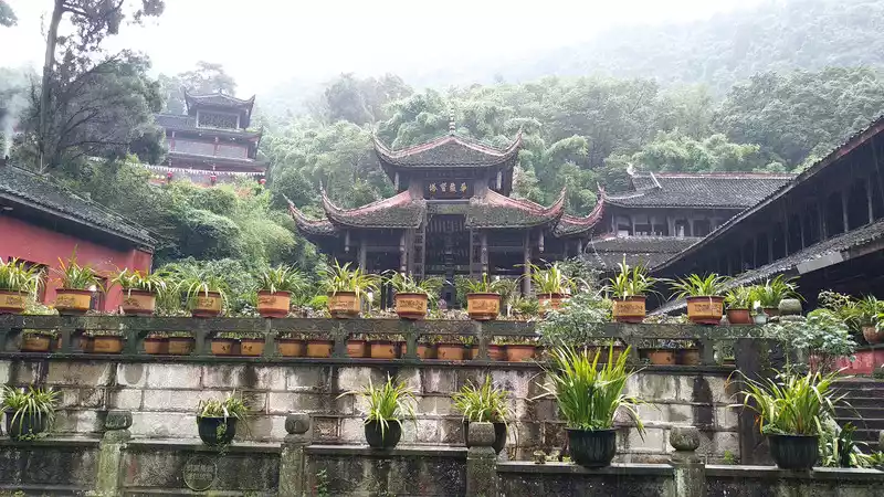 There are three routes to climb Mount Emei, one of which is from Baoguo Temple at the foot of the mountain to Fuhu Temple, and then along the mountain road to Leiyin Temple, Chunyang Hall, and Qingyin Pavilion.