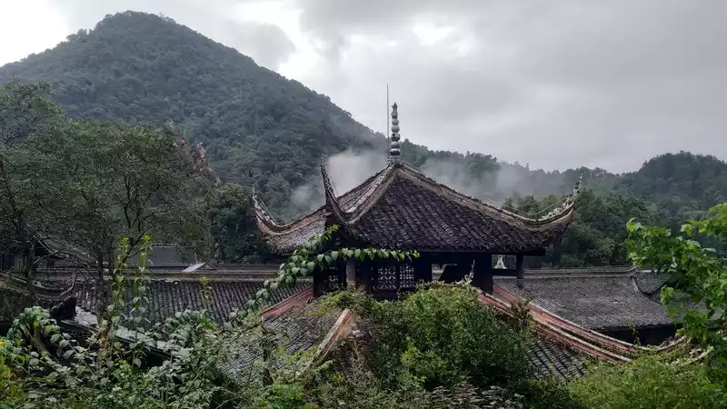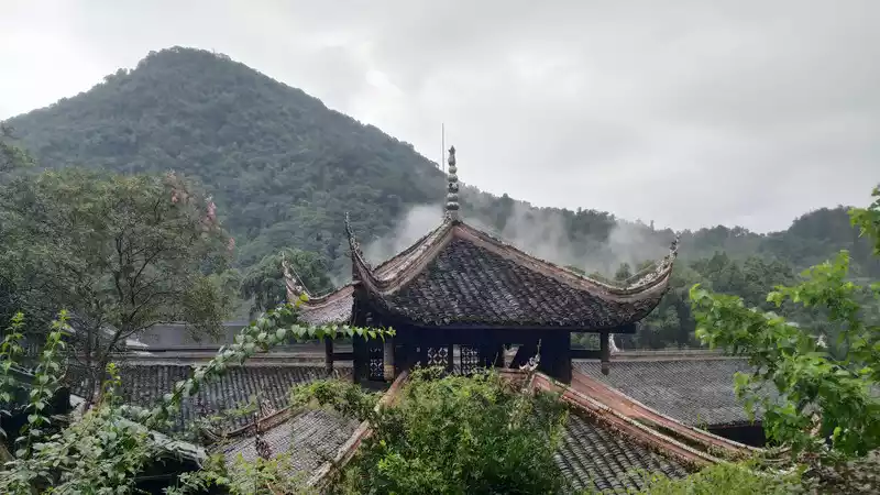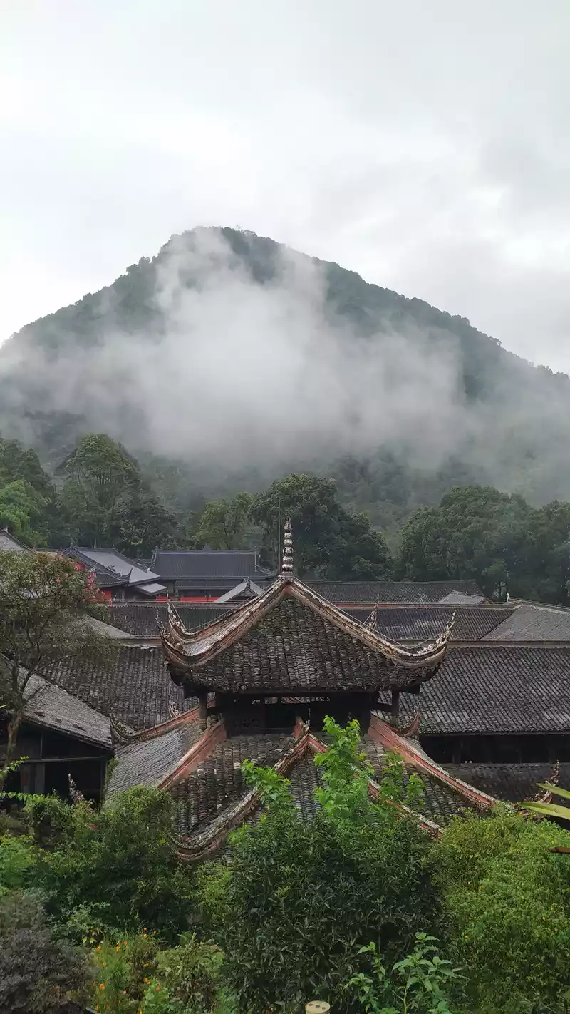 highest point of the temple is the Luohan Hall, built in the Qing Dynasty, which enshrines five hundred Arhats. Standing in front of the Luohan Hall, the rain has gradually stopped, the water vapor on the ground continues to evaporate, and the entire temple and the surrounding mountains are all shrouded in clouds and mist, making people not want to leave.