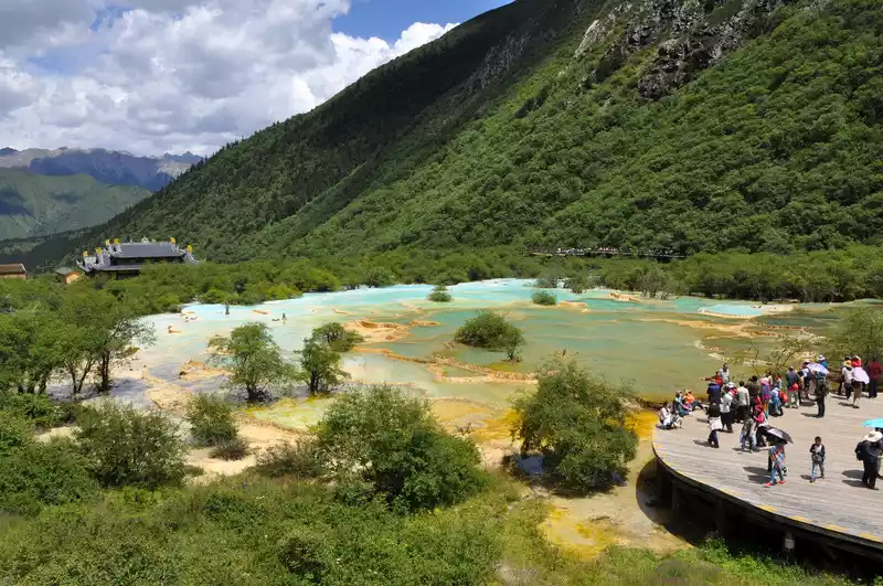 set off early in the morning to Huanglong and visit the Huanglong Scenic Area (Yaochi, Huanglong Cave, etc.);