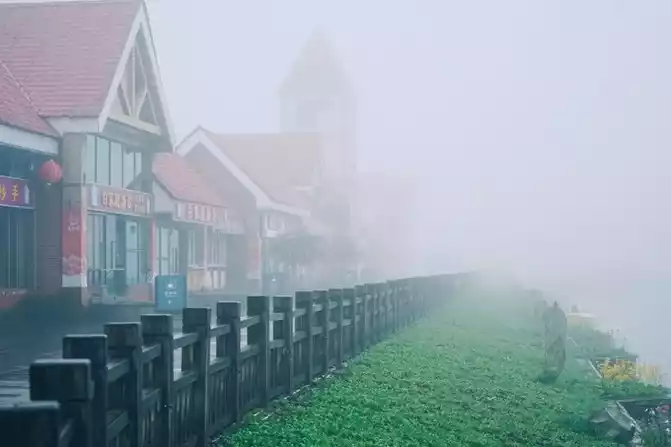 rest for a night, and the next day is optimistic about the sunrise time to go up the mountain. Unfortunately, it rained. It's better to sleep in and go up the mountain to see the sea of clouds. Take the Riyueping Ropeway, and it will take about 10 minutes to reach Riyueping.