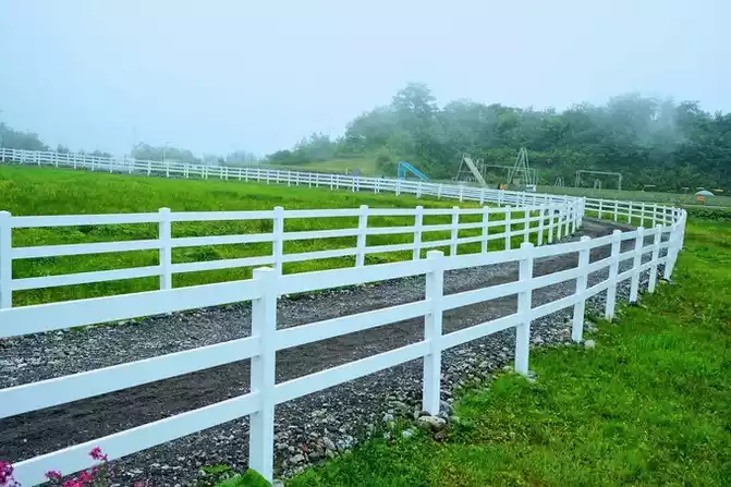 The white racetrack, the yellow yurt, and the purple flowers are so beautiful.