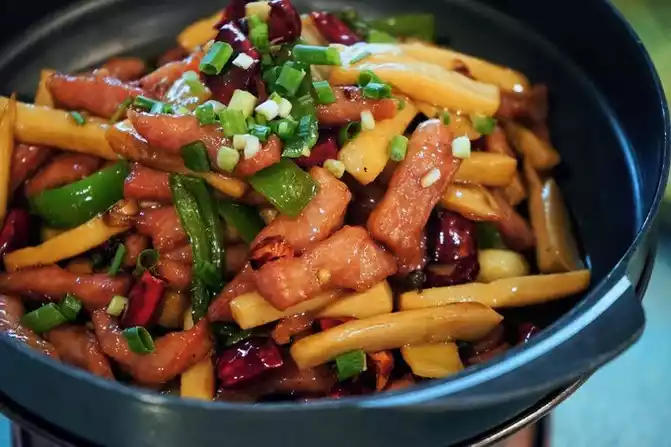 Shredded pork with mushrooms in a dry pan? Haha, it was my first time eating it, and it was quite delicious.