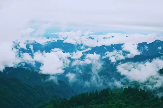 Xiling Snow Mountain Whether it's sunny, rainy or cloudy, there are different beautiful scenery. Although we didn't see the sunrise, we saw the sea of clouds. The white clouds drift in the mountains.