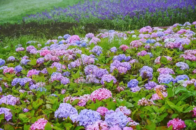 There is not only the romance of chrysanthemums here, but also large patches of hydrangeas and purple lavender as you continue to walk.
