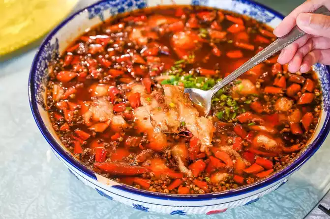 The most classic boiled fish in Sichuan cuisine can be said to be a hundred times to eat. The fragrant boiled fish must be poured with hot oil before serving to release the maximum aroma of dried chili peppers and peppercorns, so that it will be very enjoyable to eat.