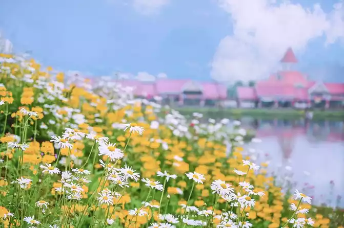Yellow primroses and white daisies are intertwined, and each place can be the most suitable check-in point, making people feel like they are in a fairy tale.