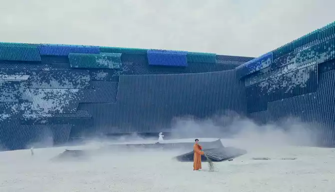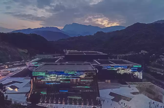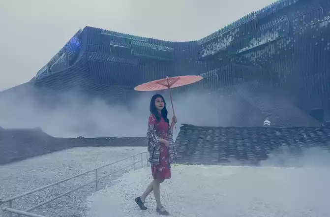 "Only Mount Emei" drama fantasy city has set several "firsts", the first drama fantasy city, the first real-life village theater, the first swastika stage and so on. From the façade of the theater building alone, 500,000 pieces of gray terracotta tiles and stained glass tiles are used to outline a magnificent and vast "picture of a thousand miles of rivers and mountains". What a big deal!