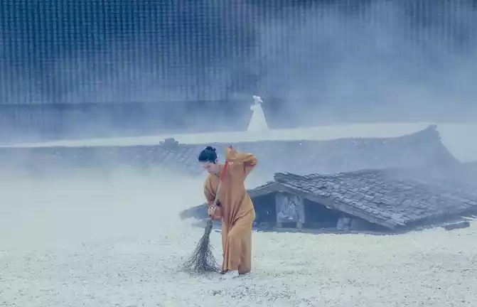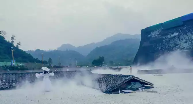 of "Only Mount Emei", the drama fantasy city is also divided into three theaters: "above the clouds", "in the clouds" and "under the clouds". Under the Clouds" theater can accommodate 700 people at the same time. The biggest highlight of the play is that it retains some of the villages and houses of the aborigines under Mount Emei, organically integrates the theater with the surrounding ecological villages, creates a marching performance mode from indoor to outdoor, and creates the only original ecological real-life village immersion drama in China.