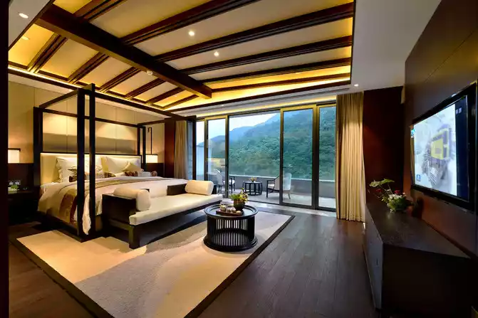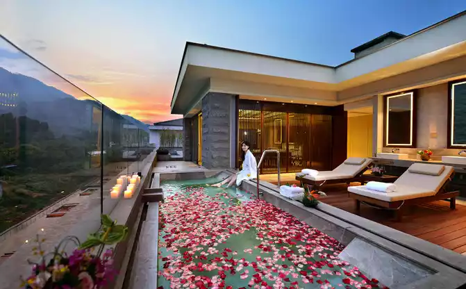 "Buddha's Holy Hot Spring Night Hot Spring" is the biggest feature of Emei Mountain Hot Spring. The hot springs in Mount Emei are rare, with rare radon hot springs. It has the largest open-air radon hot spring in China. It's a great place to relax and get close to nature! It is very comfortable to climb a mountain and come back to soak in a hot spring, and the room area is also very large. If you bring small children, it is very comfortable for the family to soak in the hot springs.