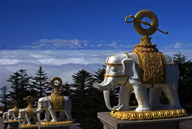 I think every place has its own representative attractions or scenic spots, for example, when it comes to Xiamen, the most reminiscent is Gulangyu, and when it comes to Mount Emei, of course it is the Golden Peak. The trees of Mount Emei are lush, and the dense layers of branches and leaves seal the beautiful mountains tightly, blocking people's vision and covering the blue sky. The beautiful and peculiar sunrise and clouds of the Golden Peak of Mount Emei have always been deeply reflected in my mind and will never be forgotten. From Chengdu, after arriving at the foot of Mount Emei, take a minibus and then transfer to the ropeway to reach the 3,077-meter-high Golden Peak of Mount Emei.