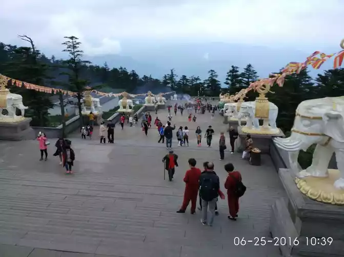 Due to the low temperature on the Golden Dome, our group wore less clothes, so everyone agreed to go down the mountain early to the next attraction. Therefore, we only stopped for an hour at the Golden Peak, and many places did not go to see it carefully. For example, the worship avenue that goes straight to the foot of the golden statue of the ten directions of Puxian is 18 meters wide, 108 meters long, and guarded by 10 pairs of elephants, which is magnificent, but Ah Li only took a photo, and did not take a walk to understand the Buddhist spirit contained in it.