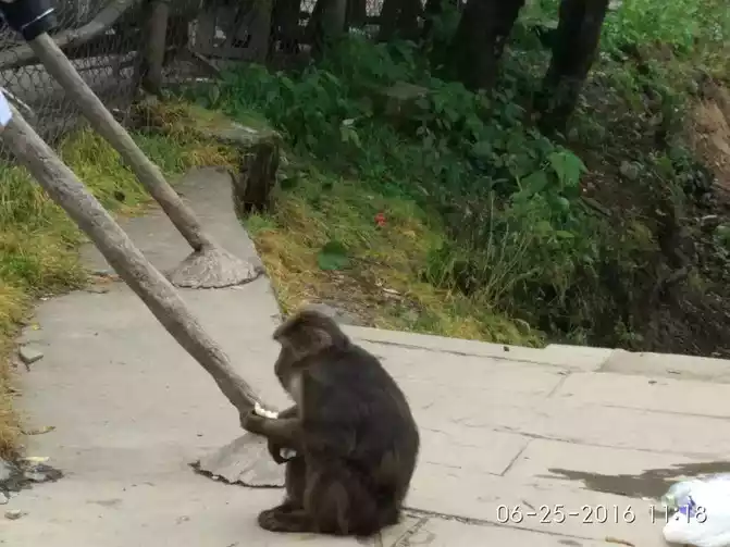 The next attraction is Mannenji Temple. The historic Wannian Temple is located at the foot of the Guanxin Ridge of Mount Emei and is the largest of the eight major temples in Mount Emei. The ancient trees here are towering, the environment is quiet, and there are many monkeys. Ah Li had long heard of the reputation of the monkeys in Mount Emei, and there was still a trace of worry in his heart before climbing the mountain.Unexpectedly, the monkeys we encountered were still relatively civilized and generally did not take the initiative to approach tourists. They just waited on both sides of the road, eagerly and quietly watching who among the tourists would give them food - whenever they found someone opening their backpack, the monkeys rushed up and took the food from their bags. Our group was lucky, only one person was kidnapped by the monkey and a bag of food was taken, and the rest were unharmed. Everyone went all the way, watching one free performance after another of the monkeys, laughing all the way. The scenic spot also arranges special staff to supervise the monkeys - they hold slingshots, as long as they find that the monkeys are intrusive to tourists, they will roar, pull the slingshot, and the monkeys will run away! So the surrounding tall trees were full of monkeys jumping, and it was very lively!