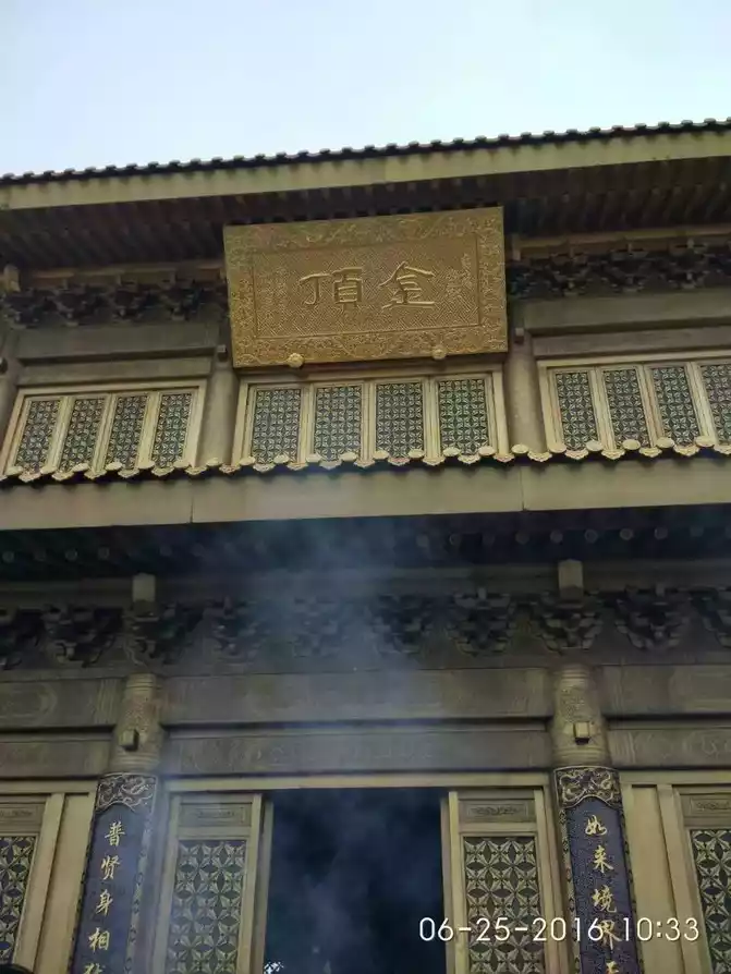 The front statue of the Ten Directions Puxian is facing the Daxiong Treasure Hall of Huazang Temple, the Copper Hall. Why is the Hall of Great Glory called the Copper Hall? It turned out that the Daxiong Treasure Hall used copper tiles, and the beams, bolts, doors, windows, bucket arches, etc. were also cast in copper, and the appearance of the whole building was simple and thick bronze. Behind the copper hall is the golden roof of Huazang Temple - the Golden Hall, because it uses gold tiles, and the entire building has a brilliant and dazzling golden appearance, hence the name. The Golden Dome is the highest temple in Mount Emei and the largest golden temple in our country. According to the tour guide, the plaque with the word "golden top" written on it is made of pure gold and donated by a layman who made a fortune and came to repay his wishes. In the Golden Hall, Ah Li also watched the monks of the temple stick the gold leaf donated by the believers on the face of the Buddha statue one by one, and for the first time he really understood what it means to "put gold on the face".