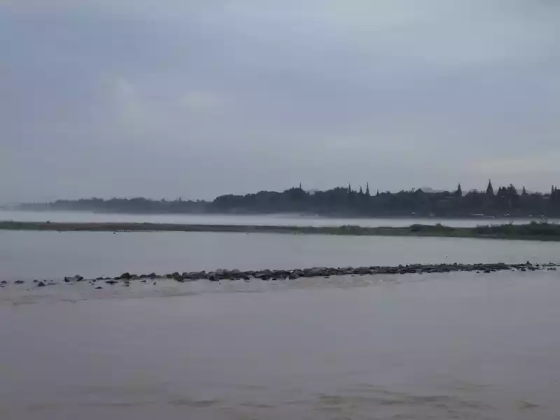 This is the famous three rivers of Leshan. Sichuan is called Sichuan because it is composed of four great rivers. Three major rivers in Sichuan (Minjiang, Dadu and Qingyi River) converge and flow here. At this moment, the three rivers in front of you are turbulent, the water surface is endless, the water is panting, and the water vapor is steaming, forming a vast and spectacular primitive scene.