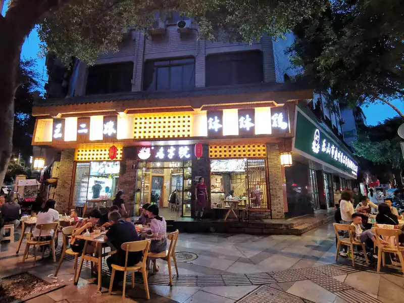 It is said that "Chinese food is in Sichuan, and Sichuan food is in Leshan". Here, I have learned what is the "foodie" of Sichuan and the "Bashi" (meaning delicious) eaten by Leshan people. At about 7 p.m., all the large and small restaurants here are full of diners, and it is difficult to find a stool. On the street at 10 o'clock in the evening, diners still lingered for a long time. Here, people let go of "talking" and "bashi" to their heart's content.