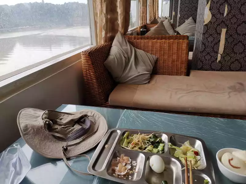 I bought a cruise ticket and boarded the boat from this boat pier called "Shangzhongshun". The first floor of the cruise ship is a lounge, where you can enjoy tea and watch the river view, and the Big Buddha is on the second platform of the cruise ship.