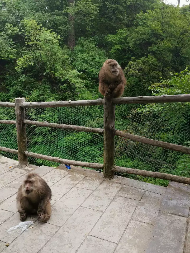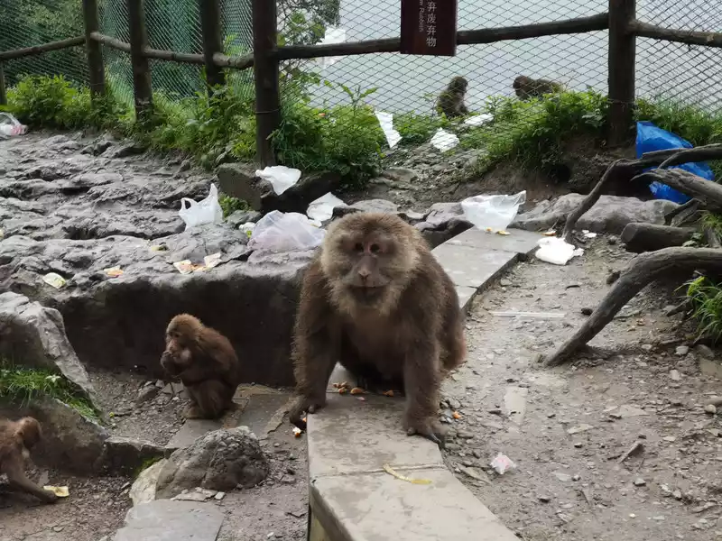 On the way to the Golden Dome Cable Car station, I unexpectedly encountered the macaques of Mount Emei.