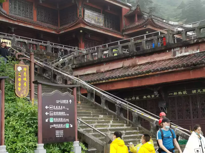 Next to the station under the cable car of the Guiding Hall, there is another steep mountain road of more than 2 kilometers. If you want to save the 120 yuan cable car fee, you can go to the Golden Peak from this road, from where many climbers and foreigners climb the Golden Peak. But when climbing at an altitude of 3,000 meters, you must do what you can!