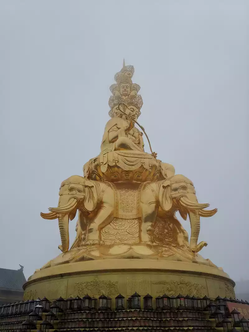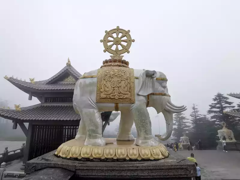It is said that the golden dome is the symbol of Mount Emei, the golden Buddha is the symbol of Mount Emei, and not reaching the golden peak is equivalent to not going to Mount Emei, and it is a regret of a lifetime not to worship the golden Buddha to the golden peak. After the six lifelike white elephants in front of us sending scriptures to the Buddha, it is time to worship the golden dome and golden Buddha of Mount Emei.