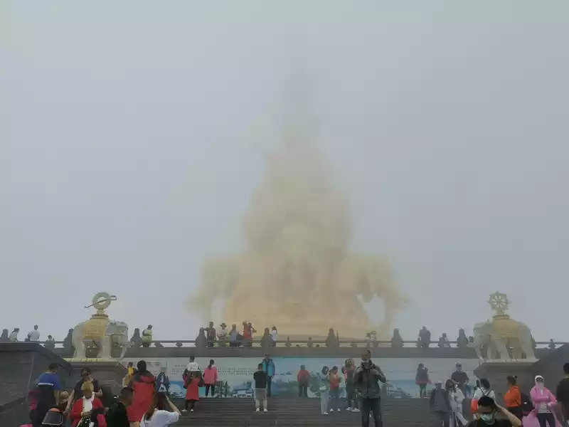 At this time, looking up along the stone steps, a huge golden Buddha came to you. Today, it is locked in clouds and mist, occasionally showing its respectful appearance.