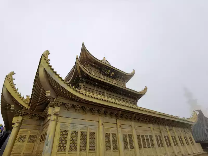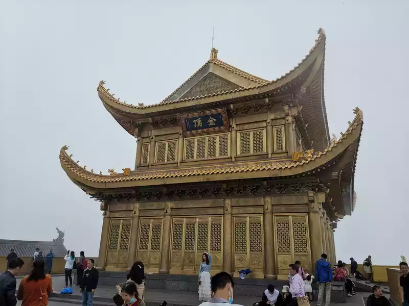 The Golden Peak of Mount Emei, also known as Huazang Temple, is located on the main peak of Mount Emei at an altitude of 3,077 meters and is the end point for tourists to visit Mount Emei. The golden top was built in the Tang and Song dynasties and completed in the Ming and Qing dynasties. The view around the Golden Dome is extremely wide, and you can watch the four wonders of Emei - sunrise, sea of clouds, Buddha's light, and holy lamp. The golden dome of Mount Emei is where the essence of Emei lies. In 1983, it was listed as a national key Buddhist monastery. The Golden Dome Golden Hall in front of you was rebuilt and completed by Sichuan Province in 1990. Mount Emei is now a national AAAAA-level scenic spot, and in 1996, it was listed as a world natural and cultural heritage.