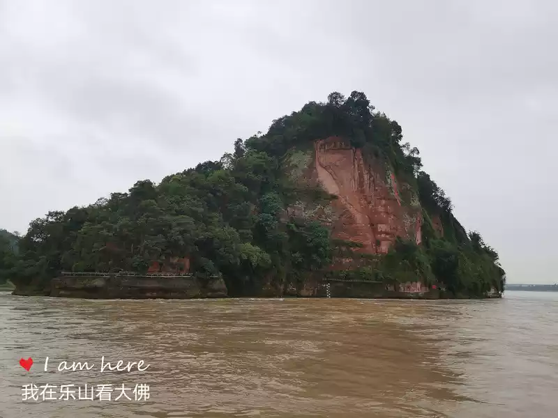 The boat slowly travels on the Min River, bypassing Lingyun Mountain and a small island on the Min River. At this moment, you look at the tourists winding through the Lingyun Mountain plank road, how small it looks, and you know how huge the Leshan Giant Buddha is.
