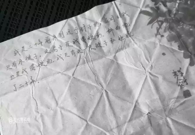 The old man in the village came to Gaohe Village 20 years ago, the picture below is a note given to me by the old man, we chatted for a long time, although he was poor and white, But he slept with his mother-in-law (wife) in the same quilt for 20 years!