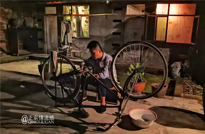 Shuai Guo on the side of the alley was still carefully repairing and wiping the 28-lap bicycle.